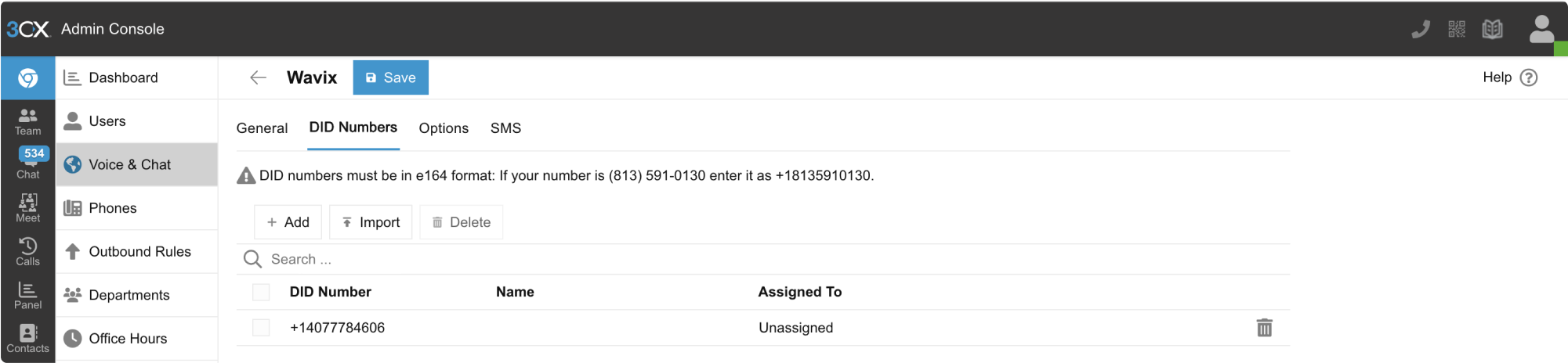 For calls to be routed to your 3CX instance, follow these steps in your Wavix account: