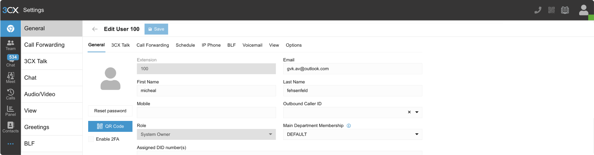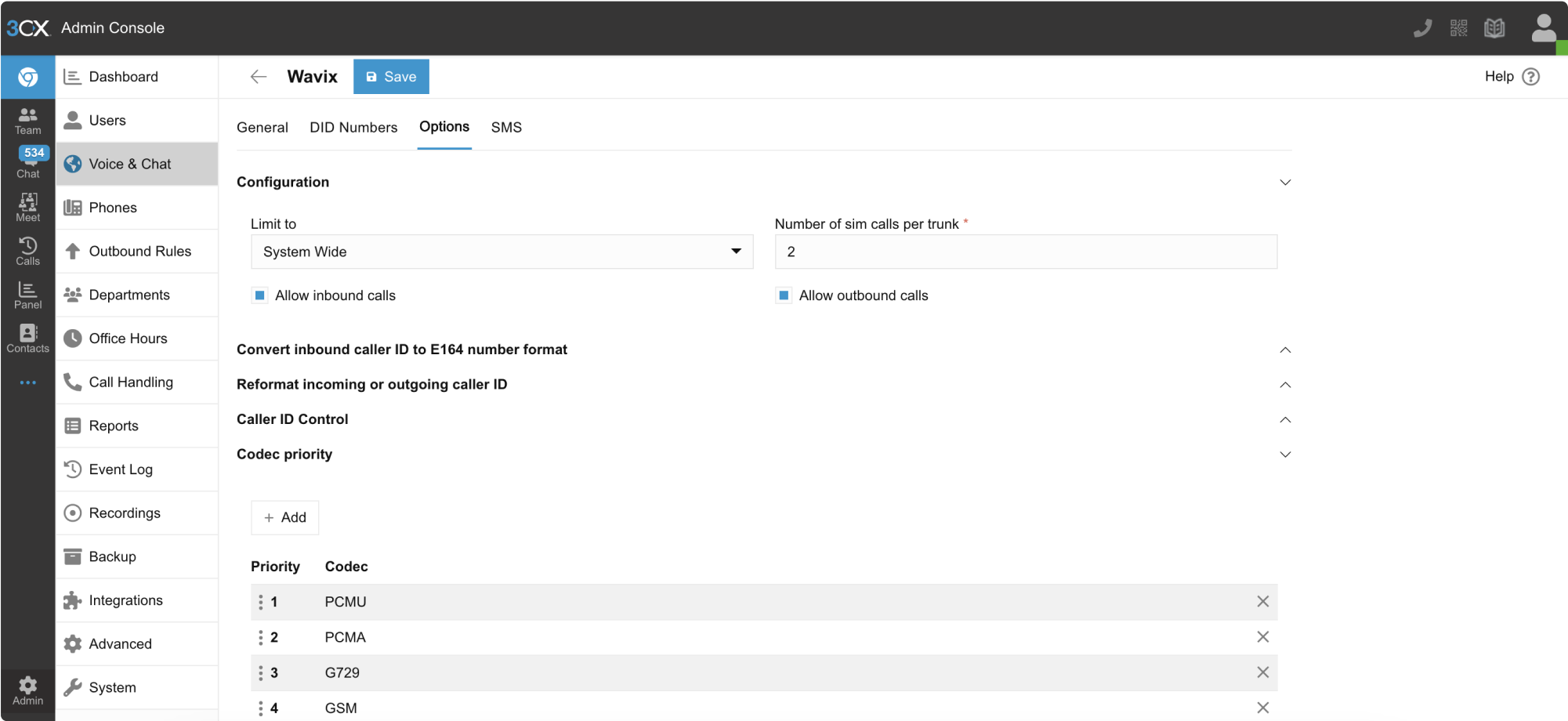 To configure inbound and outbound calls on your 3CX instance:- Log in to the 3CX management console